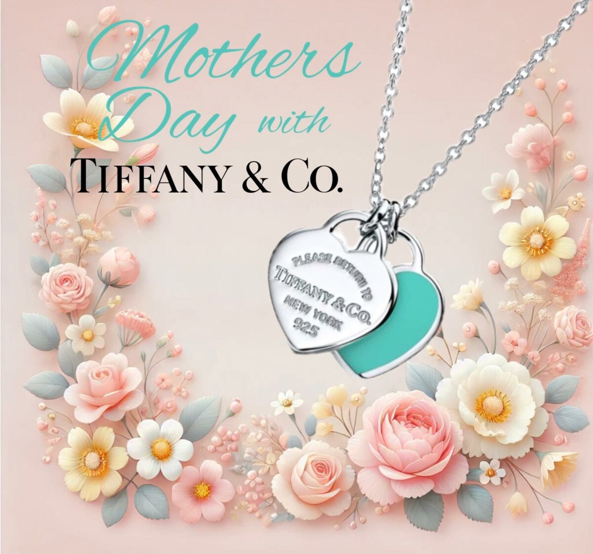Tiffany Blue Double Heart Tag Pendant